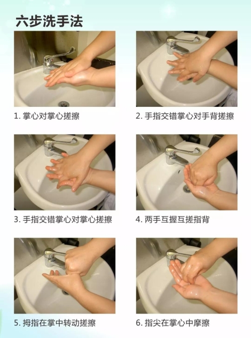 正确的洗手方法:先以流动水淋湿双手,然后使用肥皂或洗手液,按以下步骤进行: