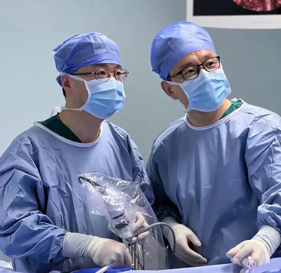 吴哲褒主任(左)和尚寒冰主任正在为患者做内镜手术