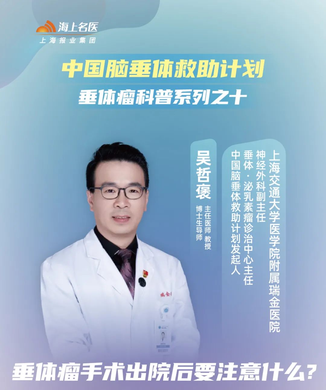 “吴主任,你应该做一期公益讲座,垂体瘤患者手术出院后如何自我管理,尤其是回家一个月内,患者应该怎么做?”江西患者张女士向吴哲褒提出的一个建议,催生了“海上名医”平台最近一期的科普节目,主题就是《垂体瘤手术出院后要注意什么》。
